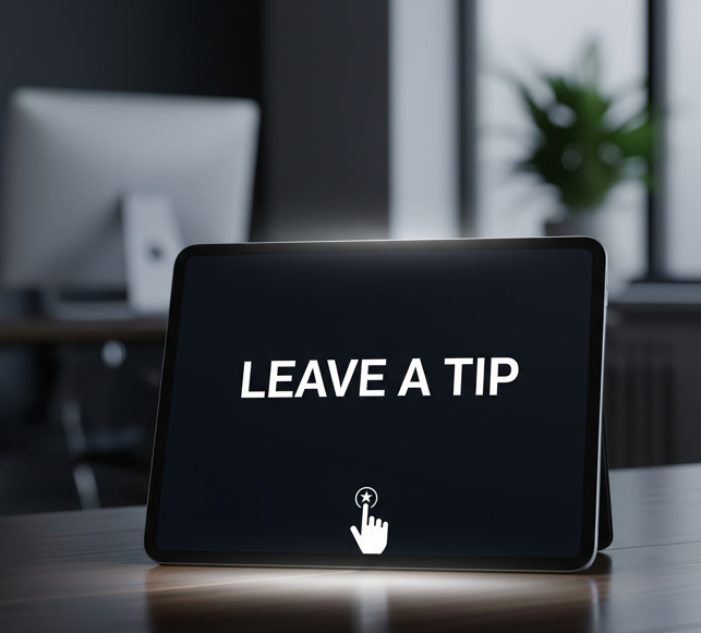 When you click the link, you’ll see a professional, simple screen with one clear instruction: LEAVE A TIP.